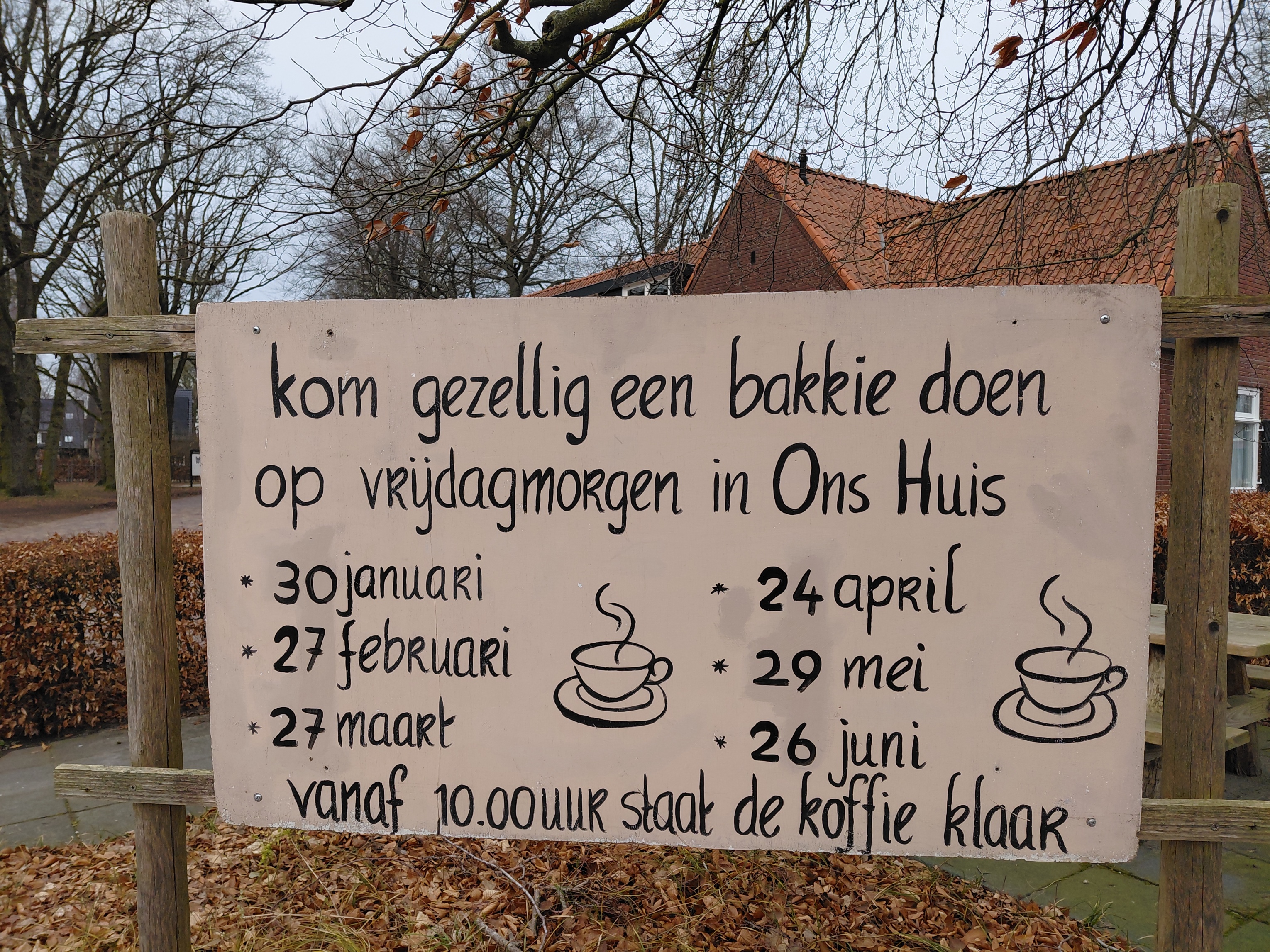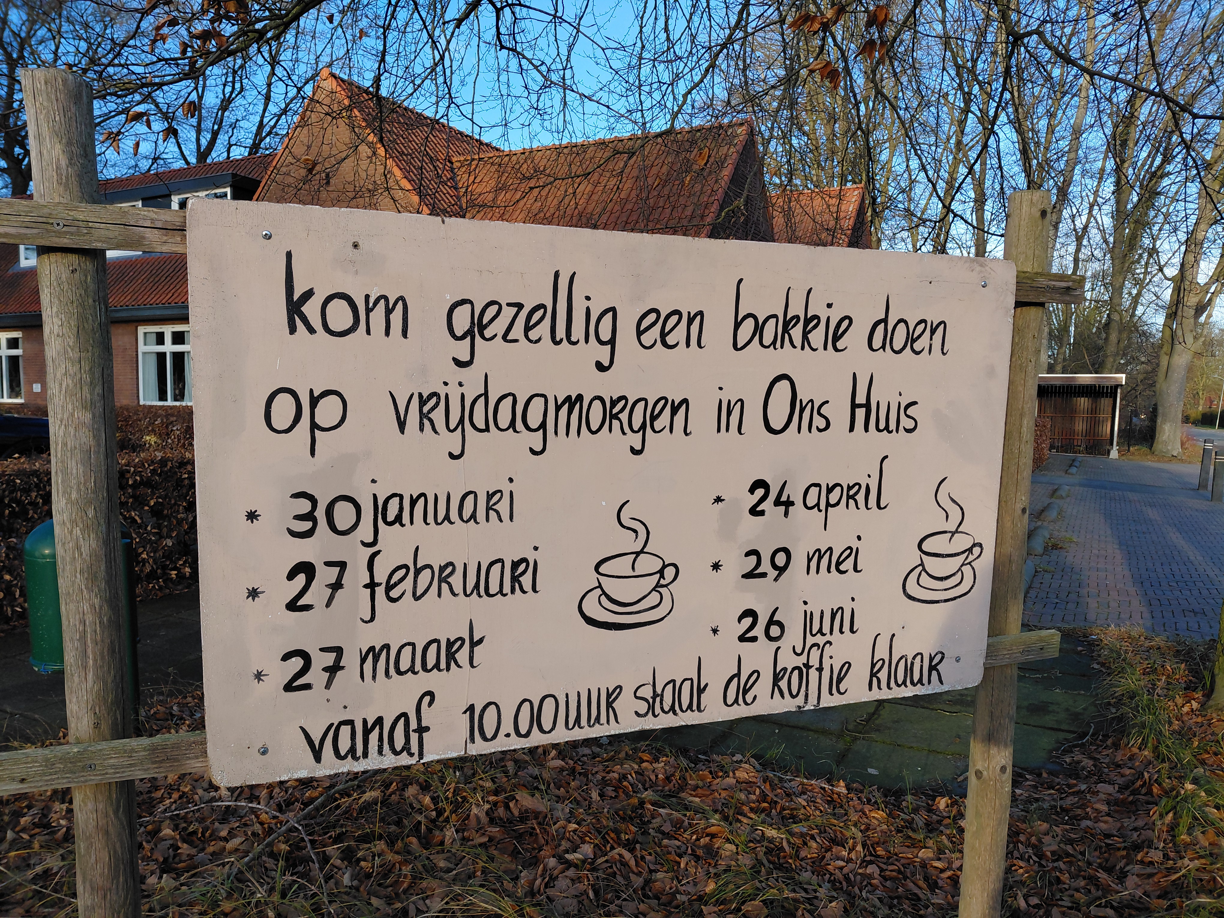 De koffie en thee met wat lekkers staat klaar vanaf 10:00 uur.